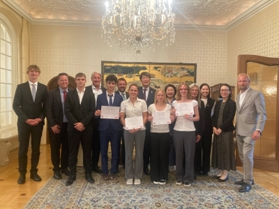 Am 9. September lud Botschafter Iwama die Schülerdelegation aus dem 22. Wiener Bezirk (Donaustadt) in die Residenz ein, um ihren Bericht über das Austauschprogramm in Japan zu hören und die Teilnahmebestätigungen zu verleihen. Der 22. Wiener Bezirk unterhält eine Partnerschaft mit dem Bezirk Arakawa in Tokio. Nach den Präsentationen der im August nach Japan gereisten Schülerinnen und Schüler wurden die Teilnahmebestätigungen an sie überreicht.