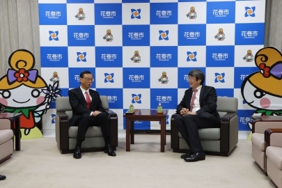Botschafter Iwama stattete dem Bürgermeister von Hanamaki, Tōichi Ueda, einen Höflichkeitsbesuch ab. Gemeinsam blickten sie auf die Geschichte des Austauschs zwischen den beiden Städten zurück und tauschten sich über Möglichkeiten aus, wie die Beziehungen zwischen den beiden Partnerstädten weiter ausgebaut werden könnten. Darüber hinaus vertiefte Botschafter Iwama durch Gespräche mit Vertretern der Hanamaki International Exchange Association, dem Ohasama-Berndorf-Freundschaftsverein und der Japanisch-Österreichischen Gesellschaft der Präfektur Iwate sein Verständnis für kommunale Austauschinitiativen.