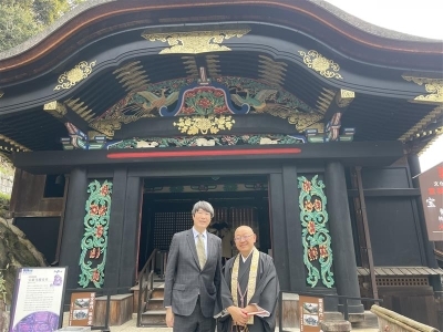 Botschafter Iwama besuchte darüber hinaus den Hōgon-ji-Tempel auf der Insel Chikubu. In diesem Tempel befindet sich das einzige noch erhaltene Karamon-Tor der „Gokuraku-Brücke“. Im österreichischen Schloss Eggenberg, das zum UNESCO-Weltkulturerbe zählt, ist ein Paravent aus der Toyotomi-Zeit mit einer Darstellung von Osaka und diesem Torzu sehen. Für das Jahr 2025 haben das Tourismusbüro der Stadt Graz, das Universalmuseum Joanneum und die Abteilung für internationale Tourismusförderung der Tourismusvereinigung der Präfektur Shiga (Biwako Visitors Bureau) eine Vereinbarung über eine Zusammenarbeit im Tourismusbereich unterzeichnet.