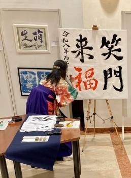 Ein Workshop zum Thema „Kakizome“, einem traditionellen japanischen Neujahrsbrauch, fand im Rahmen des Programms des Japanischen Informations- und Kulturzentrums statt. Nach einer eindrucksvollen Kalligrafie-Performance der Kalligrafiemeisterin Keisetsu Sakuragi, die die Schriftzeichen „笑門来福“ („Das Glück kommt zu denen, die lachen“) präsentierte, übten die Teilnehmenden die von ihnen gewählten Zeichen und schrieben diese anschließend sorgfältig auf weißes Papier.