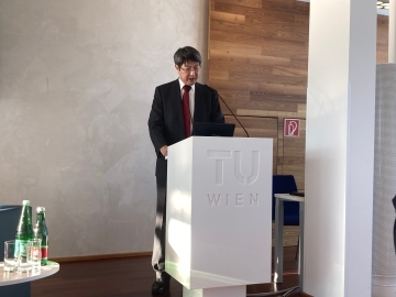 11月7日、岩間大使は、昨年に続きウィーン工科大学で開催された第二回「ジャパン・サイエンス・デー」に出席しました。このイベントは同大学の日本オーストリア科学交流センター(JASEC)のイニシアチブのもと、日本との研究協力強化を目的に開催されており、本年は、日本学術振興会 (JSPS)等が助成プログラムを紹介したほか、「グローバルネットワーク」「二国間研究協力」「若手科学者」というテーマに焦点を当て、生き生きとしたディスカッションや研究者同士のネットワーキングが行われました。