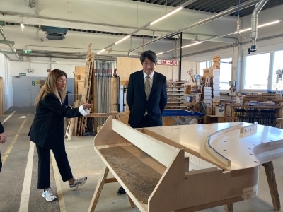 4月8日、岩間大使はベーゼンドルファー・ウィーナーノイシュタット工場を訪問しました。ベーゼンドルファー社は現存する最古のピアノメーカーであり、1828年の創業以来、日本を含む世界中にピアノを供給しています。2008年には日本の楽器メーカーであるヤマハがベーゼンドルファー社の経営権を取得しました。昨年の大阪・関西万博におけるオーストリア・パビリオンでは、北斎の浮世絵「神奈川沖浪裏」を屋根の内側に描いた同社製作のピアノが展示され、大いに話題となりました。