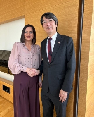4月15日、岩間大使はブルゲンラント州を訪問し、アストリッド・アイゼンコプフ(Astrid Eisenkopf)ブルゲンラント州議会議長を表敬訪問しました。両者は、「交流と協力に関する覚書」を締結している滋賀県との更なる関係促進など、日墺関係の一層の発展に向けて、幅広い分野にわたり意見交換を行いました。