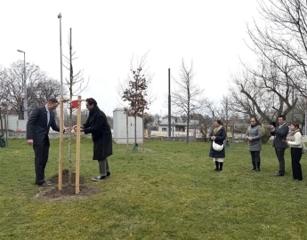 徳臨時代理大使のウィーン工科大学と東京大学の学術交流45周年記念植樹式出席(2026年3月16日)